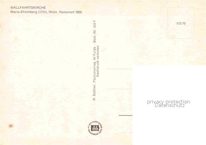 72836313 Wildflecken Wallfahrtskirche Maria-Ehrenberg postalisch nicht gelaufen Erhaltung siehe scans [NatalD47] KatCode: 11110009672163