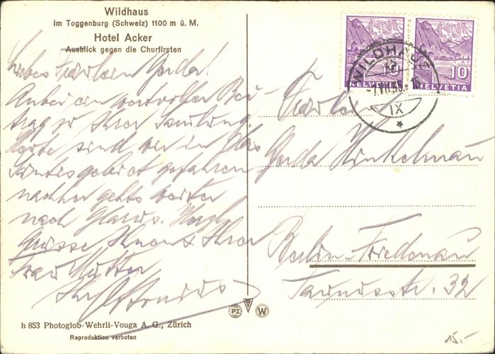 41192593 alte Postkarte Wildhaus SG Hotel Acker Churfirsten postalisch gelaufen KatCode: 11470190585844