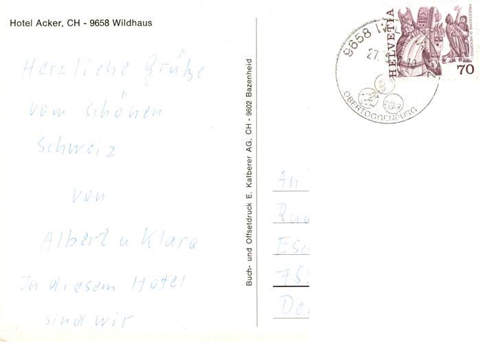 13904306 alte Postkarte Wildhaus SG Hotel Acker Panorama postalisch gelaufen Erhaltung siehe scans [FriedD77] KatCode: 11470190585844