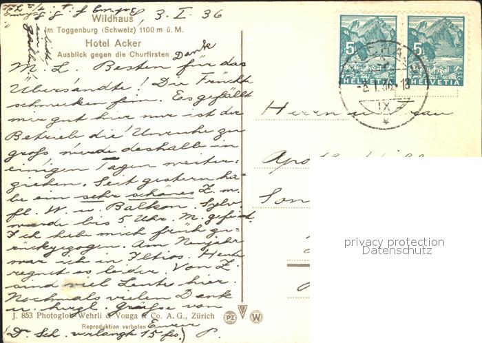 11628333 alte Postkarte Wildhaus SG Hotel Acker Restaurant Churfirsten postalisch gelaufen Erhaltung siehe scans KatCode: 11470190585844