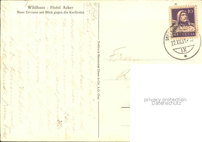 11628302 alte Postkarte Wildhaus SG Hotel Acker Terrasse Kurfirsten postalisch gelaufen Erhaltung siehe scans KatCode: 11470190585844