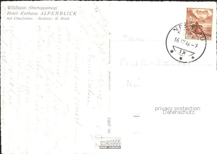 11629914 Wildhaus SG Hotel Kurhaus Alpenblick mit Churfirsten Appenzeller Alpen postalisch gelaufen Erhaltung siehe scans Alte Ansichtskarte Postkarte alte Postkarte hz_F Katcode 11470190585844