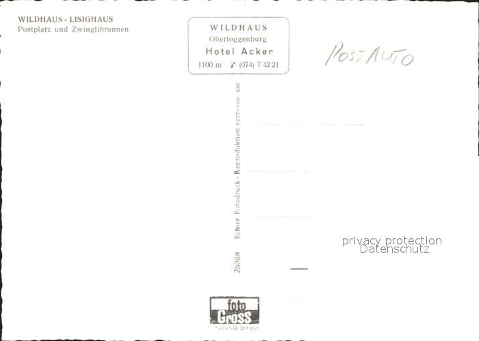11628466 Wildhaus SG Lisighaus Postplatz Zwinglibrunnen Bus postalisch nicht gelaufen Erhaltung siehe scans KatCode: 11470190585844