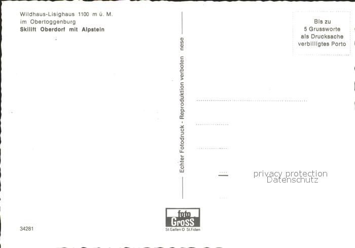 11628312 Wildhaus SG Lisighaus Skilift Oberdorf Alpstein postalisch nicht gelaufen Erhaltung siehe scans KatCode: 11470190585844