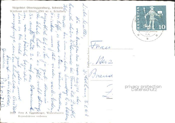11629726 alte Postkarte Wildhaus SG Panorama Skigebiet Obertoggenburg mit Saentis und Schafberg Appenzeller Alpen postalisch gelaufen Erhaltung siehe scans KatCode: 11470190585844