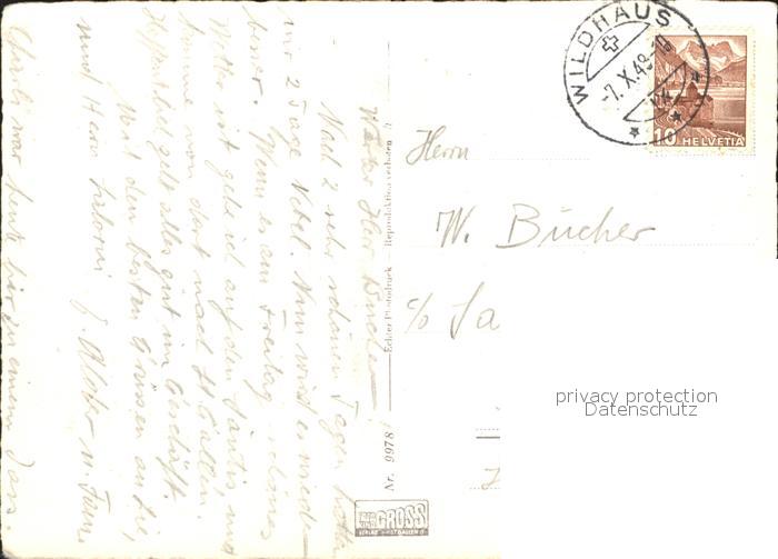 11629513 alte Postkarte Wildhaus SG Pension Roesliwies mit Churfirsten Appenzeller Alpen postalisch gelaufen Erhaltung siehe scans KatCode: 11470190585844