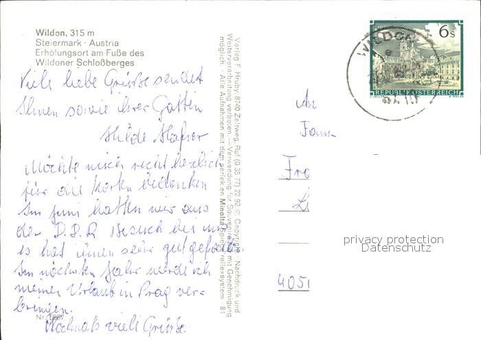 72072104 alte Postkarte Wildon Wildoner Schlossberge Fliegeraufnahme postalisch gelaufen KatCode: 11390225061047