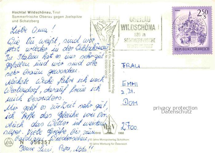 74157563 alte Postkarte Wildschoenau Kufstein Tirol AT Kirche Berglandschaft Blumenschmuck Oberau Joelspitze Schatzberg Wiesen postalisch gelaufen Erhaltung siehe scans [Karloger] KatCode: 11390335070513