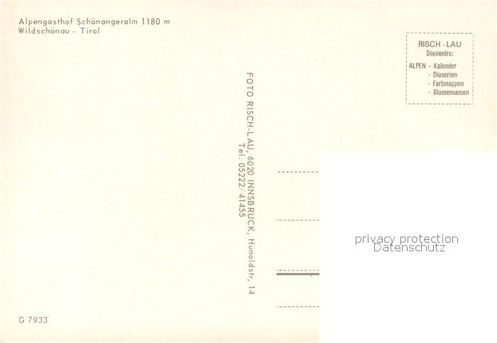 13199678 Wildschoenau Tirol Alpengasthof Schoenangeralm postalisch nicht gelaufen Erhaltung siehe scans [KathaD81] KatCode: 11390335070513