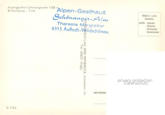 73340206 Wildschoenau Tirol Alpengasthof Schoenangeralm postalisch nicht gelaufen Erhaltung siehe scans [LiesaD40] KatCode: 11390335070513