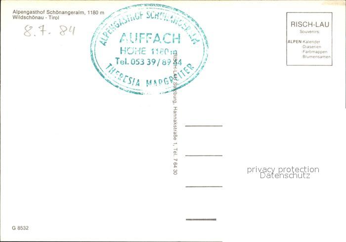 72288300 Wildschoenau Tirol Alpengasthof Schoenangeralm postalisch nicht gelaufen Erhaltung siehe scans KatCode: 11390335070513