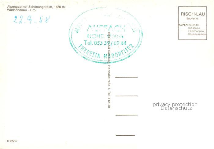 73357361 Wildschoenau Tirol Alpengasthof Schoenangeralm postalisch nicht gelaufen Erhaltung siehe scans [WerneD78] KatCode: 11390335070513