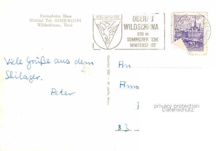 72671455 alte Postkarte Wildschoenau Tirol Ferienheim Haas postalisch gelaufen Erhaltung siehe scans [WerneD78] KatCode: 11390335070513