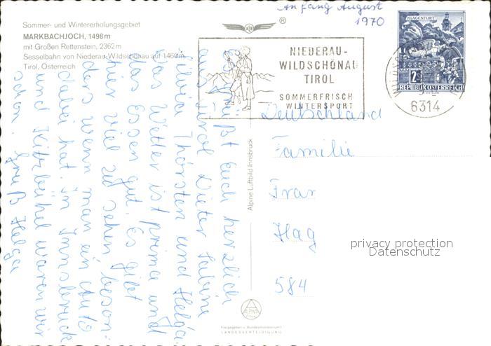 72056050 alte Postkarte Wildschoenau Tirol Fliegeraufnahme Markbachjoch Kitzbueheler Alpen Grossen Retenstein Sesselbahn postalisch gelaufen Erhaltung siehe scans KatCode: 11390335070513