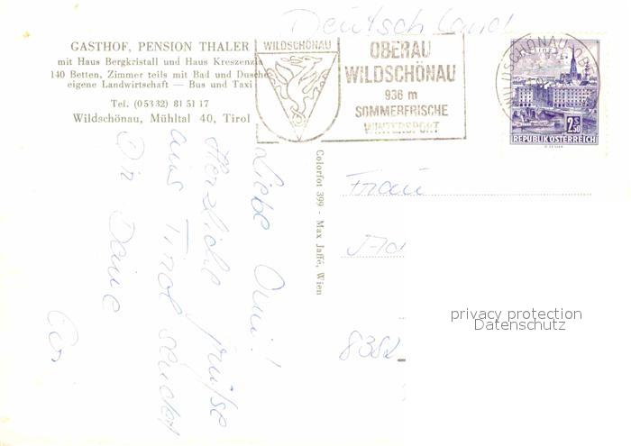 32603930 alte Postkarte Wildschoenau Tirol Gasthaus Pension Thaler postalisch gelaufen Erhaltung siehe scans [LiesaD40] KatCode: 11390335070513