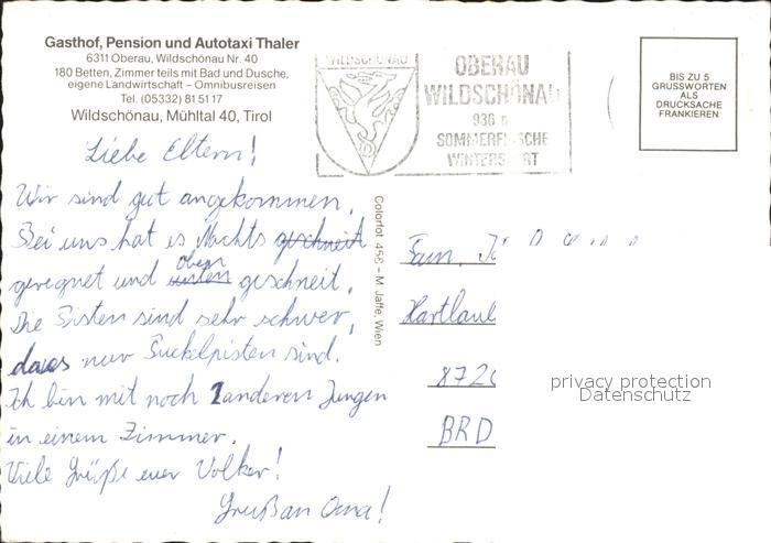 72051490 alte Postkarte Wildschoenau Tirol Gasthof Pension und Autotaxi Thaler Gastraum postalisch gelaufen KatCode: 11390335070513