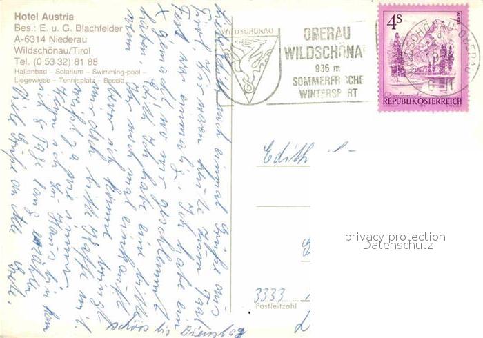 12754991 alte Postkarte Wildschoenau Tirol Hotel Austria postalisch gelaufen Erhaltung siehe scans [AndreD76] KatCode: 11390335070513