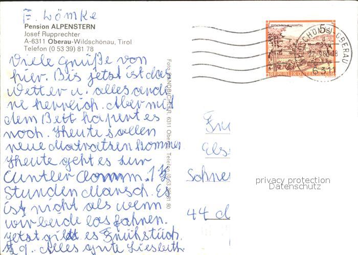 72390880 alte Postkarte Wildschoenau Tirol Pension Alpenstern postalisch gelaufen Erhaltung siehe scans KatCode: 11390335070513