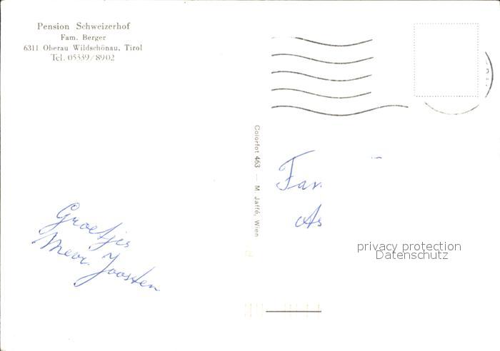 72409221 alte Postkarte Wildschoenau Tirol Pension Schweizerhof postalisch gelaufen Erhaltung siehe scans KatCode: 11390335070513