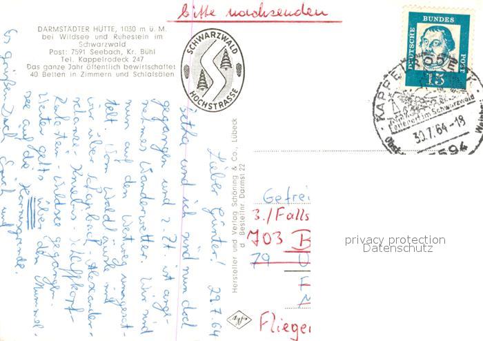 73549308 alte Postkarte Wildsee Schwarzwald Darmstaedter Huette postalisch gelaufen Erhaltung siehe scans [WerneD78] KatCode: 11110008237004