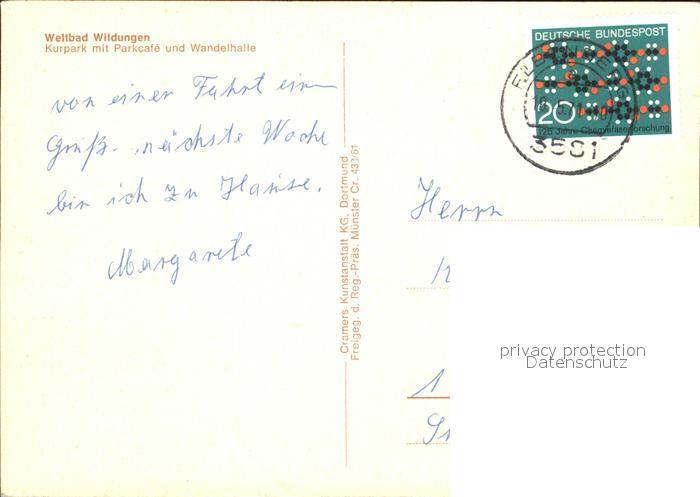72580693 alte Postkarte Wildungen Bad Luftaufnahme Weltbad Parkcafe Wandelhalle postalisch gelaufen Erhaltung siehe scans [KathaD79] KatCode: 11110006635003