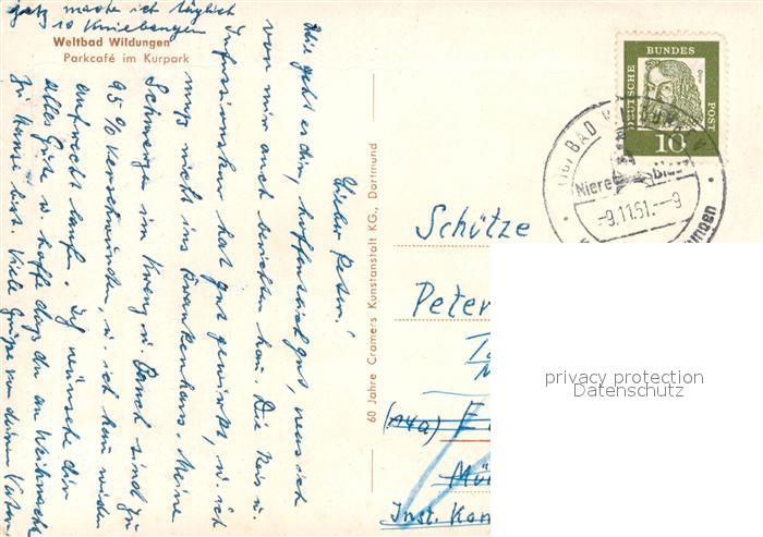 73168820 alte Postkarte Wildungen Bad Parkcafe Kurpark postalisch gelaufen Erhaltung siehe scans [KathaD81] KatCode: 11110006635003