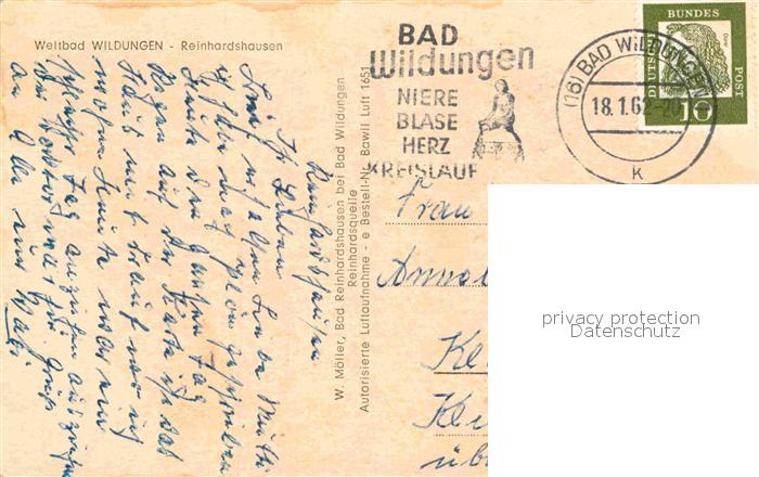 72843287 alte Postkarte Wildungen Bad Reinhardshausen postalisch gelaufen Erhaltung siehe scans [KathaD81] KatCode: 11110006635003