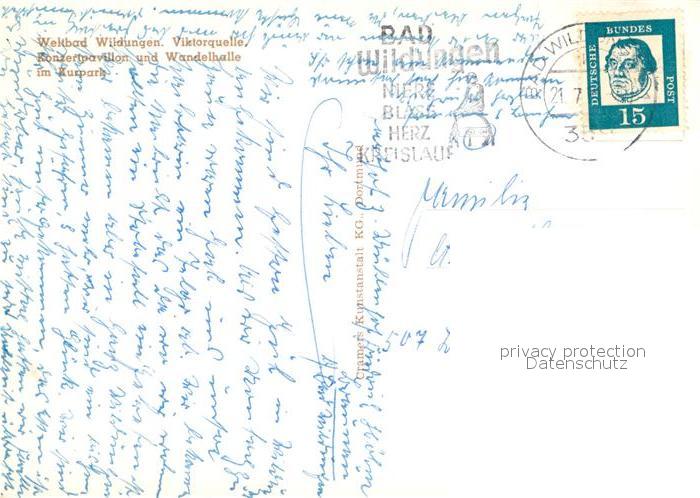 73005390 alte Postkarte Wildungen Bad Viktorquelle Konzertpavillon Wandelhalle Kurpark postalisch gelaufen Erhaltung siehe scans [KathaD81] KatCode: 11110006635003