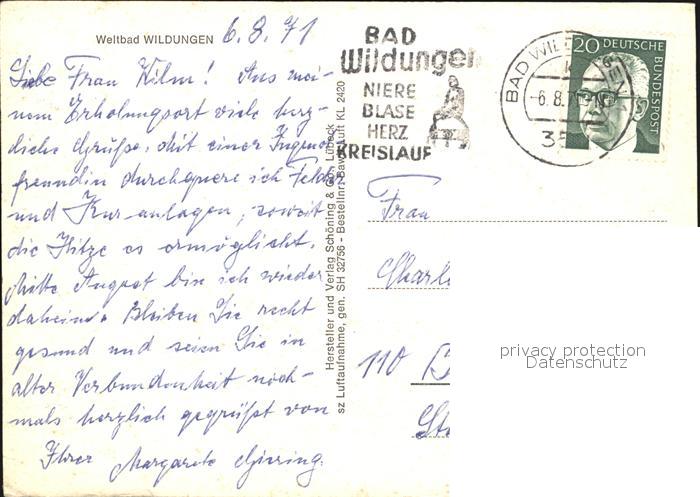 72554696 alte Postkarte Wildungen Bad Weltbad postalisch gelaufen Erhaltung siehe scans [AntonD74] KatCode: 11110006635003