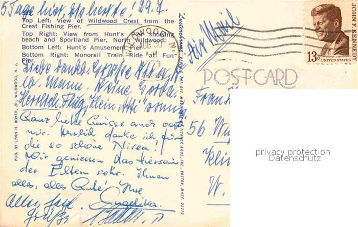 72679491 old postcard Wildwood New Jersey Wildwood Crest from the Crest Fishing Pier Beach Sportland Pier Amusement Pier Fun Pier postalisch gelaufen Erhaltung siehe scans [FriedD77] KatCode: 14140320000000