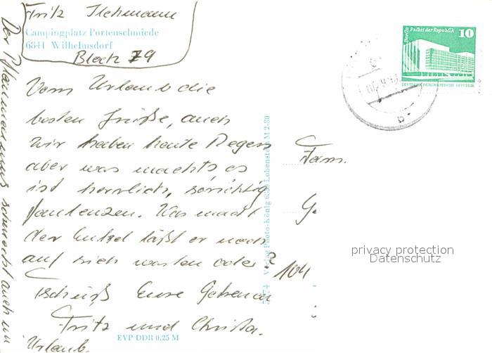 72648879 alte Postkarte Wilhelmsdorf Poessneck Campingplatz Portenschmiede postalisch gelaufen Erhaltung siehe scans [LiesaD40] KatCode: 11110016075125