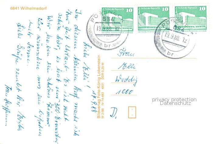 73544121 alte Postkarte Wilhelmsdorf Poessneck Landschaftspanorama Saale Ortsmotiv Kirche Schwanenteich postalisch gelaufen Erhaltung siehe scans [FriedD77] KatCode: 11110016075125