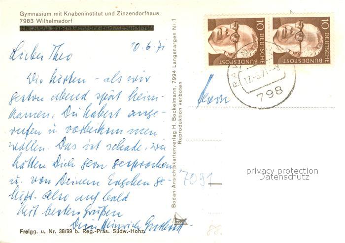 73646536 alte Postkarte Wilhelmsdorf Wuerttemberg Gymnasium mit Knabeninstitut und Zinzendorfhaus Fliegeraufnahme postalisch gelaufen Erhaltung siehe scans [FriedD77] KatCode: 11110008436083