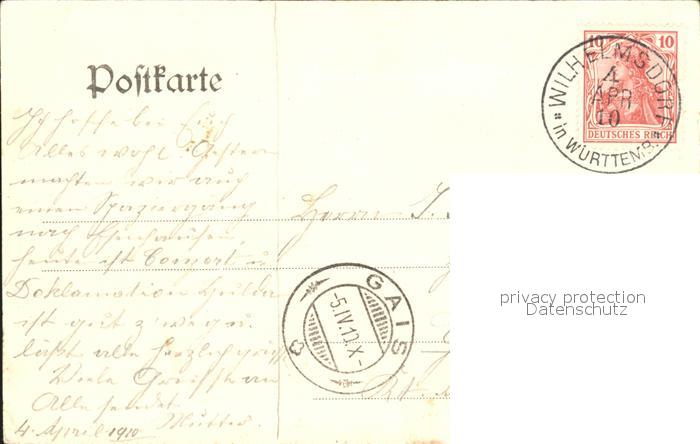 32101139 alte Postkarte Wilhelmsdorf Wuerttemberg Kirche Toechter-Institut postalisch gelaufen Erhaltung siehe scans KatCode: 11110008436083