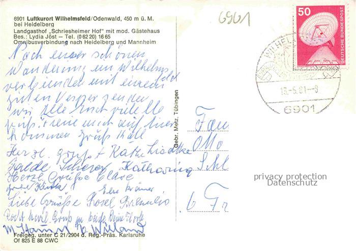 74048747 alte Postkarte Wilhelmsfeld Fliegeraufnahme postalisch gelaufen Erhaltung siehe scans [WerneD78] KatCode: 11110008226099