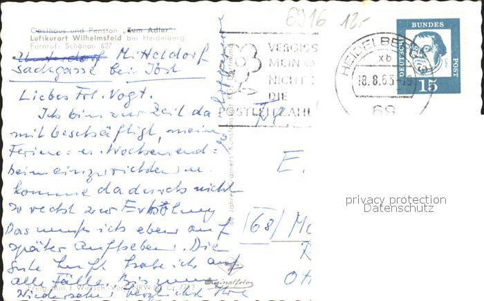 72098327 alte Postkarte Wilhelmsfeld Fliegeraufnahme postalisch gelaufen Erhaltung siehe scans KatCode: 11110008226099