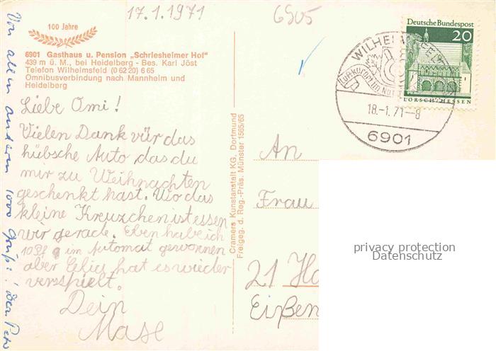 74035803 alte Postkarte Wilhelmsfeld Fliegeraufnahme mit Gasthaus Schriesheimer Hof postalisch gelaufen Erhaltung siehe scans [WerneD78] KatCode: 11110008226099