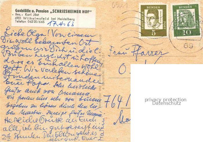 74048624 alte Postkarte Wilhelmsfeld Fliegeraufnahme mit Gaststaette Schriesheimer Hof postalisch gelaufen Erhaltung siehe scans [WerneD78] KatCode: 11110008226099