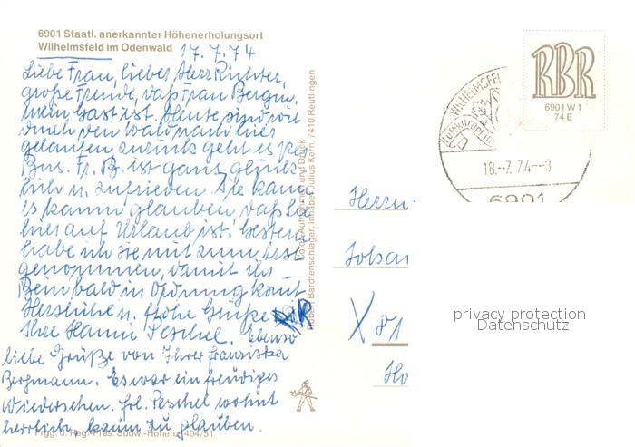 73813405 alte Postkarte Wilhelmsfeld Fliegeraufnahme Panorama Teilansichten postalisch gelaufen Erhaltung siehe scans [WerneD78] KatCode: 11110008226099