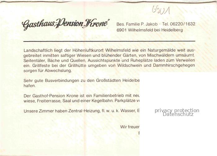 74048554 Wilhelmsfeld Gasthaus Pension Krone Gastraeume Terrasse postalisch nicht gelaufen Werbekarte (keine Postkarte) Erhaltung siehe scans [WerneD78] KatCode: 11110008226099