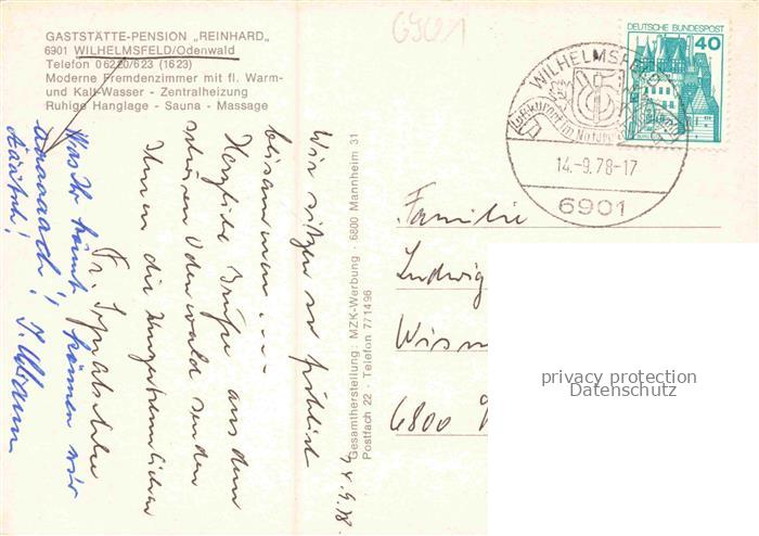 74048591 alte Postkarte Wilhelmsfeld Gaststaette Reinhard Terrasse Panorama postalisch gelaufen Erhaltung siehe scans [WerneD78] KatCode: 11110008226099