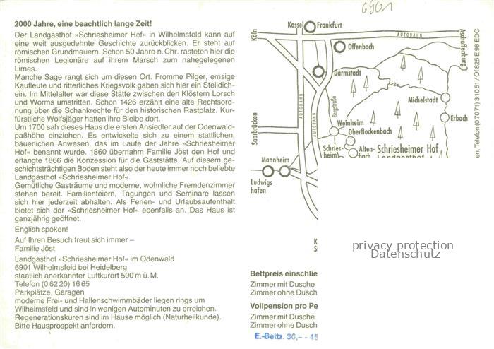 74048712 Wilhelmsfeld Landgasthof Schriesheimer Hof Gaestehaus Kaminklause Roemerstube Hofburg postalisch nicht gelaufen Werbekarte (keine Postkarte) Erhaltung siehe scans [WerneD78] KatCode: 11110008226099