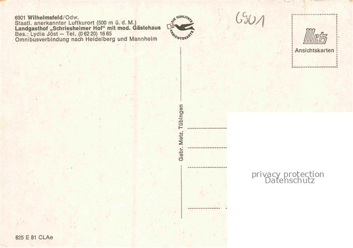 74048760 Wilhelmsfeld Landgasthof Schriesheimer Hof mit Gaestehaus postalisch nicht gelaufen Erhaltung siehe scans [WerneD78] KatCode: 11110008226099