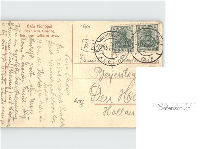 32363411 alte Postkarte Wilhelmshaven Cafe Monopol Gaststube postalisch gelaufen Erhaltung siehe scans KatCode: 11110003405000