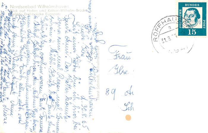 73905824 Wilhelmshaven CITY Blick auf Hafen und Kaiser Wilhelm Bruecke postalisch gelaufen Erhaltung siehe scans [WerneD78] alte Postkarte Wern Katcode 11110003405000