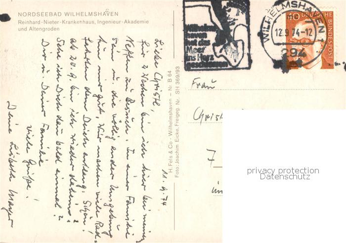 73759129 Wilhelmshaven CITY Fliegeraufnahme Reinhard Nieter Krankenhaus Ingenieur Akademie und Altengroden postalisch gelaufen Erhaltung siehe scans [WerneD78] alte Postkarte Wern Katcode 11110003405000