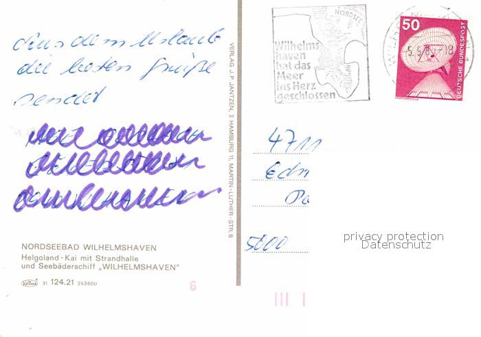 72741951 alte Postkarte Wilhelmshaven CITY Helgoland Kai mit Strandhalle und Seebaederschiff Wilhelmshaven postalisch gelaufen Erhaltung siehe scans [WerneD78] KatCode: 11110003405000