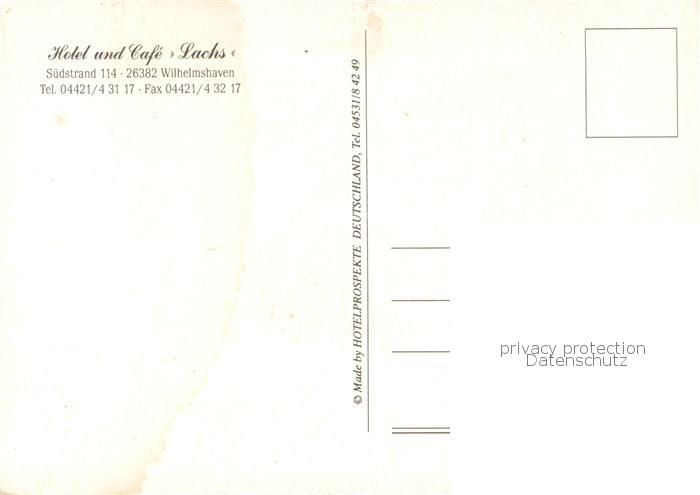 73758469 Wilhelmshaven CITY Hotel-Cafe Lachs Sonnenterrasse Meerblick postalisch nicht gelaufen Erhaltung siehe scans [LiesaD40] Lies Katcode 11110003405000