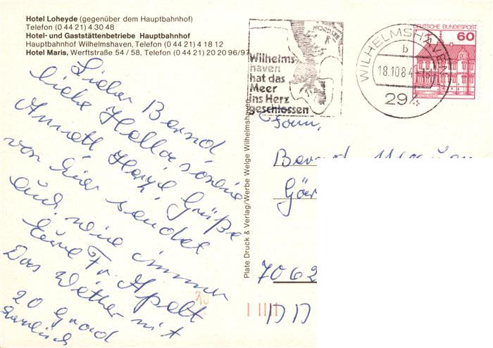 73906011 Wilhelmshaven CITY Hotel Loheyde Gastraeume Bar Theke postalisch gelaufen Erhaltung siehe scans [WerneD78] alte Postkarte Wern Katcode 11110003405000