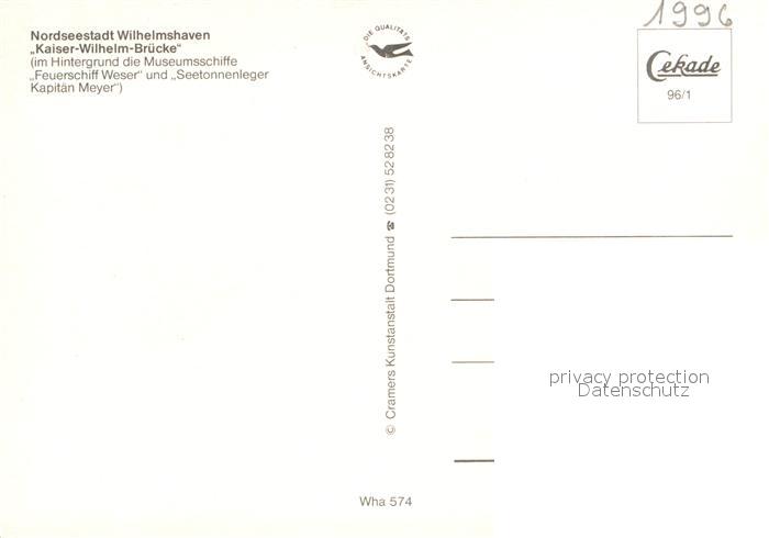 72933570 Wilhelmshaven CITY Kaiser Wilhelm Br?cke Museumsschiffe Feuerschiff-Weser postalisch nicht gelaufen Erhaltung siehe scans [LiesaD40] KatCode: 11110003405000
